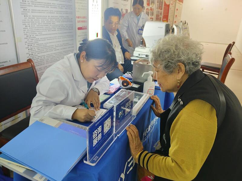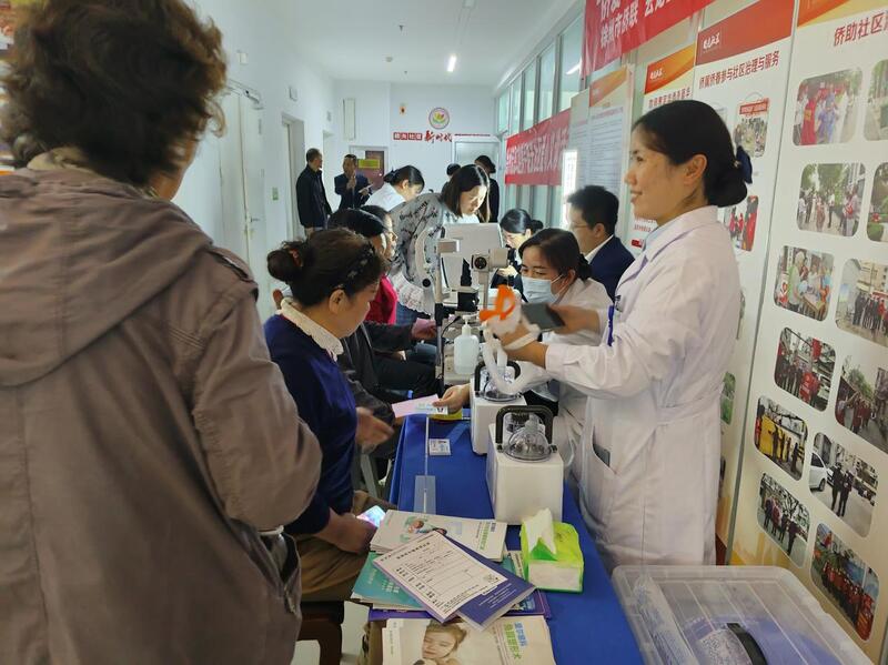 另一侧眼科服务专区同样忙碌而温馨。医生为疑似患有白内障的老人做了进一步专项检查,同时为有需要的老人提供眼部雾化服务,缓解干涩、疲劳等不适。老人们纷纷表示,这样的专业服务既贴心又便利。