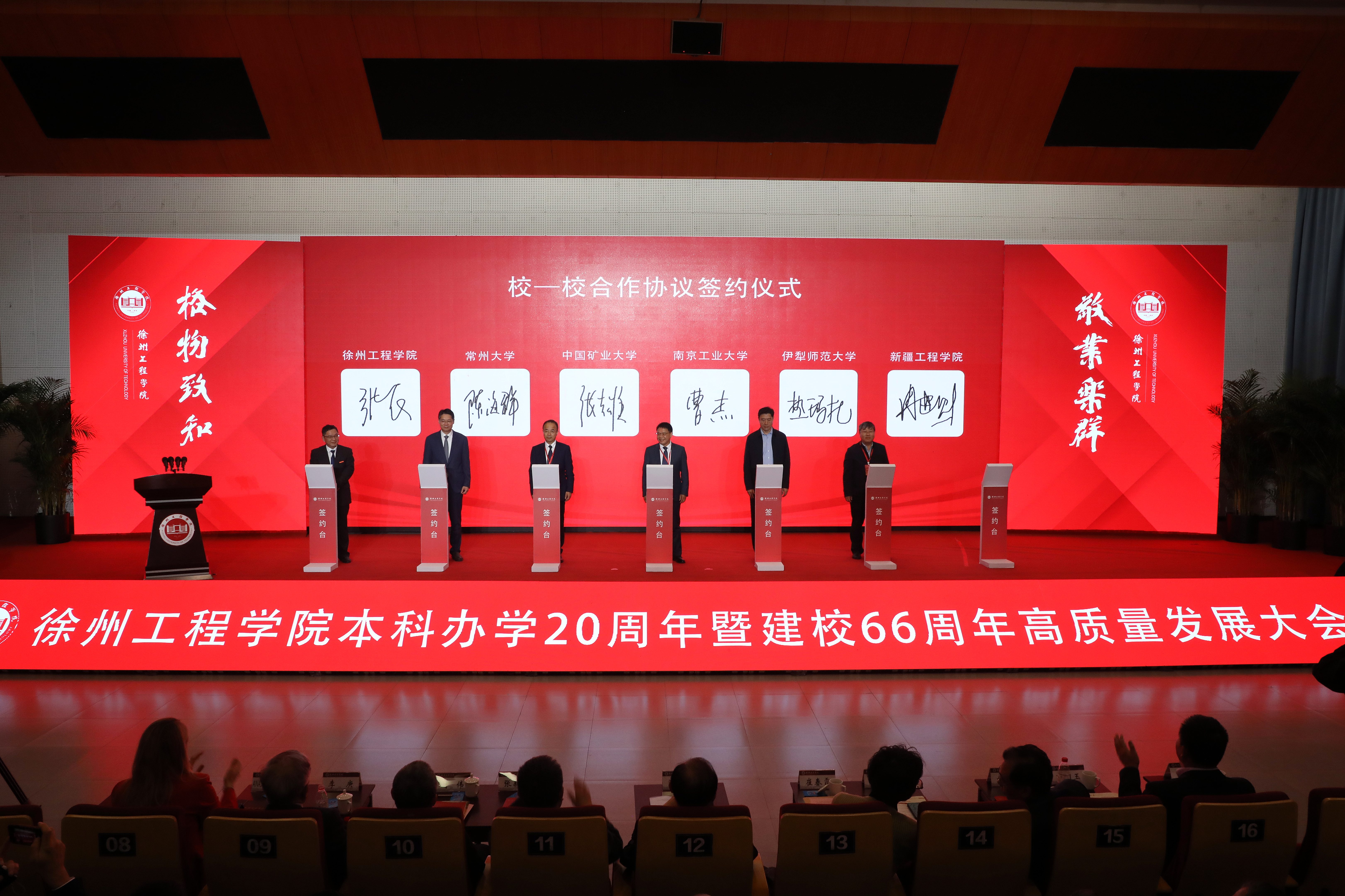 大会现场,徐州工程学院与徐州市工业和信息化局、邳州市人民政府等6家单位签订校地合作协议,与中国矿业大学、常州大学等5所高校签订校校合作协议,与扬州职业技术大学等5所职业院校签订贯通式培养协议,与江苏黎明控股集团等6家企业签订校企合作项目协议。一系列协议的签订,将校地、校校、校企资源深度融合,为学校发展注入新动能,也为区域产业升级提供智力支撑。