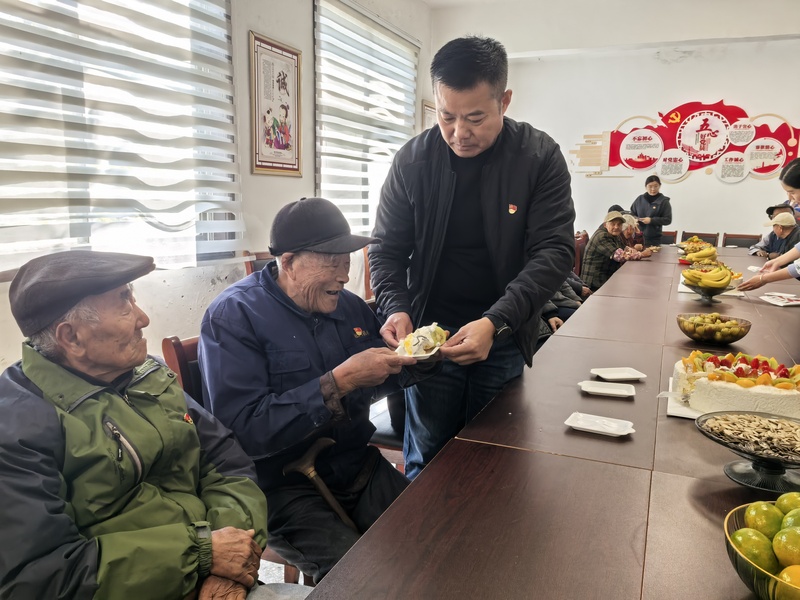 活动当天,社区活动室内暖意融融,一场热闹的重阳节茶话会在此拉开帷幕。桌上整齐摆放着水果、点心,还有一个特意定制的节日蛋糕,蛋糕上“祝爷爷奶奶重阳节快乐”的字样格外醒目。上午九点,老人们在工作人员和党员志愿者的陪伴下陆续到场,云龙区人大代表、赵店社区党支部书记陈波,主动上前迎接,与老人们亲切握手,搀扶着他们入座。“王阿姨,最近身体怎么样?天冷了要多添件衣服”“李大爷,您反映的健身器材维修问题,我们已经协调解决了,您有空去看看”,工作人员耐心询问他们的生活起居、健康状况,认真倾听老人们的心声诉求,并不时在笔记本上记录着老人对社区养老服务、环境整治、文化活动等方面的意见建议,老人们围坐在一起,拉着家常、话着过往,不时传来阵阵欢声笑语。