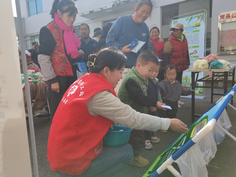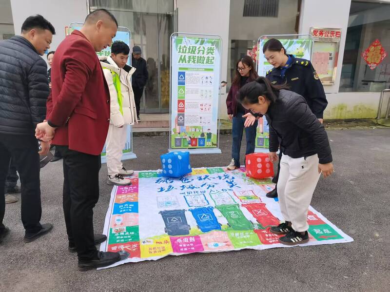 互动体验区更是整场活动最受居民欢迎的“人气高地”:“垃圾分类投沙包”游戏前围满了人,4岁的小朋友耀耀手持写有“剩菜剩饭”的沙包,在工作人员的引导下,瞄准后稳稳投进绿色厨余垃圾筐,赢得礼品一份,稚嫩的脸上满是开心;若有居民投错,工作人员会立刻上前,结合错误原因讲解分类逻辑。不远处,由四色垃圾桶模型与骰子搭建的“垃圾分类大闯关”同样热闹,居民王女士接连闯过4关后,笑着分享:“这种‘玩着学’的方式比单纯听讲解好记多了!”居民们在趣味互动中掌握了分类方法,既为后续减少混合垃圾处理压力、推动资源回收打下基础,更让抽象的环保理念变成了可落地的生活习惯。