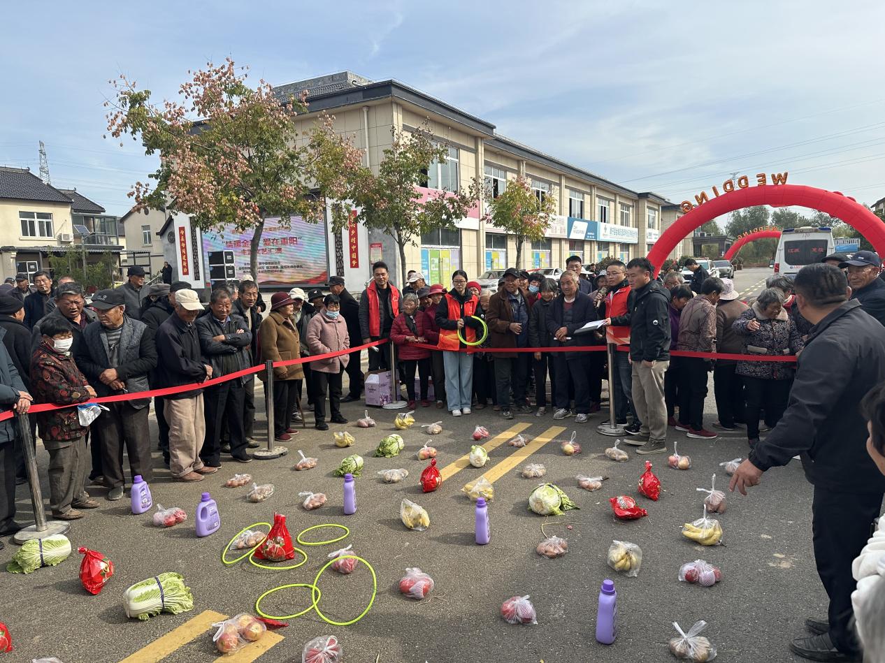 最富趣味性和人气的环节当属“蔬果套圈”活动。白菜、西红柿、土豆、柚子、苹果等新鲜时蔬作为奖品被摆放在地上,老人们兴致勃勃,轮流上场。每当有人套中目标时,现场便响起出热烈的欢呼和掌声,不仅让老人们重温了童年乐趣,更在互动中增进了邻里情谊。胡居英奶奶抱着自己“战利品”——白菜兑换券,乐得合不拢嘴:“玩得开心,还有实实在在的收获,这活动办得有意思!”