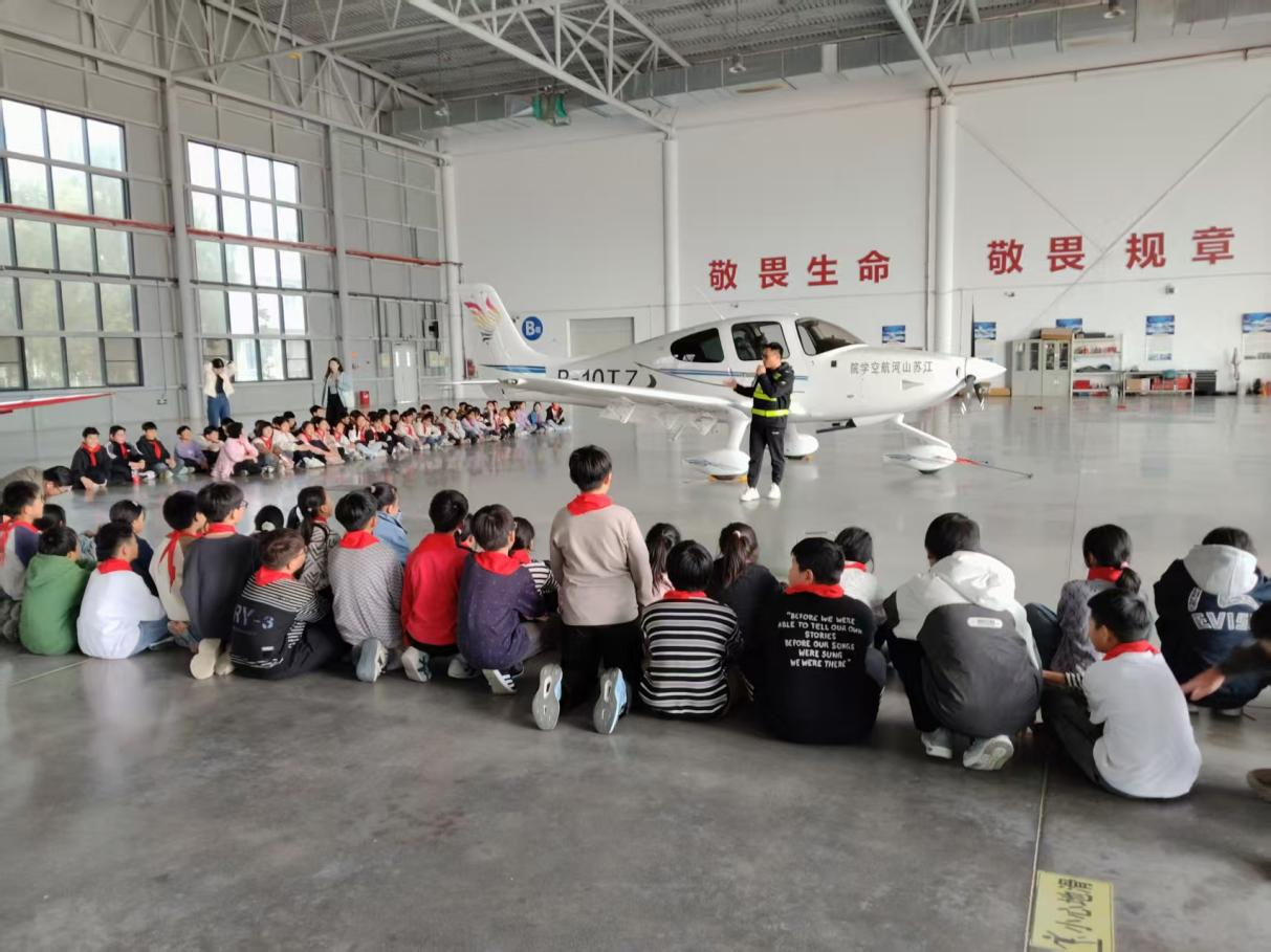 在通用航空科普教育基地,他们在大屏前观看航空应用展示,于“历史回眸”展区追溯世界航空发展历程,聆听航空发动机结构讲解,还通过VR设备沉浸式体验航天场景。走进机库,近距离观察江苏山河航空学院的飞机,工作人员耐心且积极地回应学生们提出的关于飞机的各类问题,与学生们热烈互动、答疑解惑,助力大家深入探索航空知识,在真切互动中感受航空科技的力量。