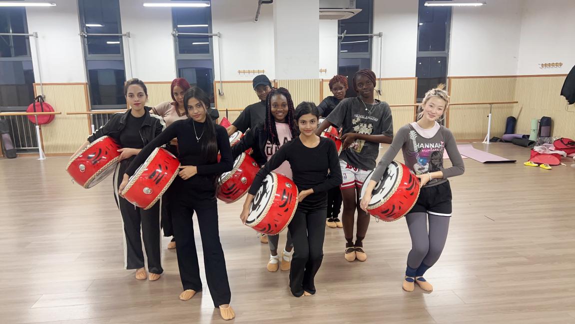 2024年,她们加入学校新成立的“鼓舞社团”——一支以徐州地方非遗鼓舞为载体的国际学生文艺团队。在鼓点与舞步中,她们与来自十余国的同学协作排练,用身体语言诠释对中国文化的理解,也成为校园多元共融的生动注脚。
