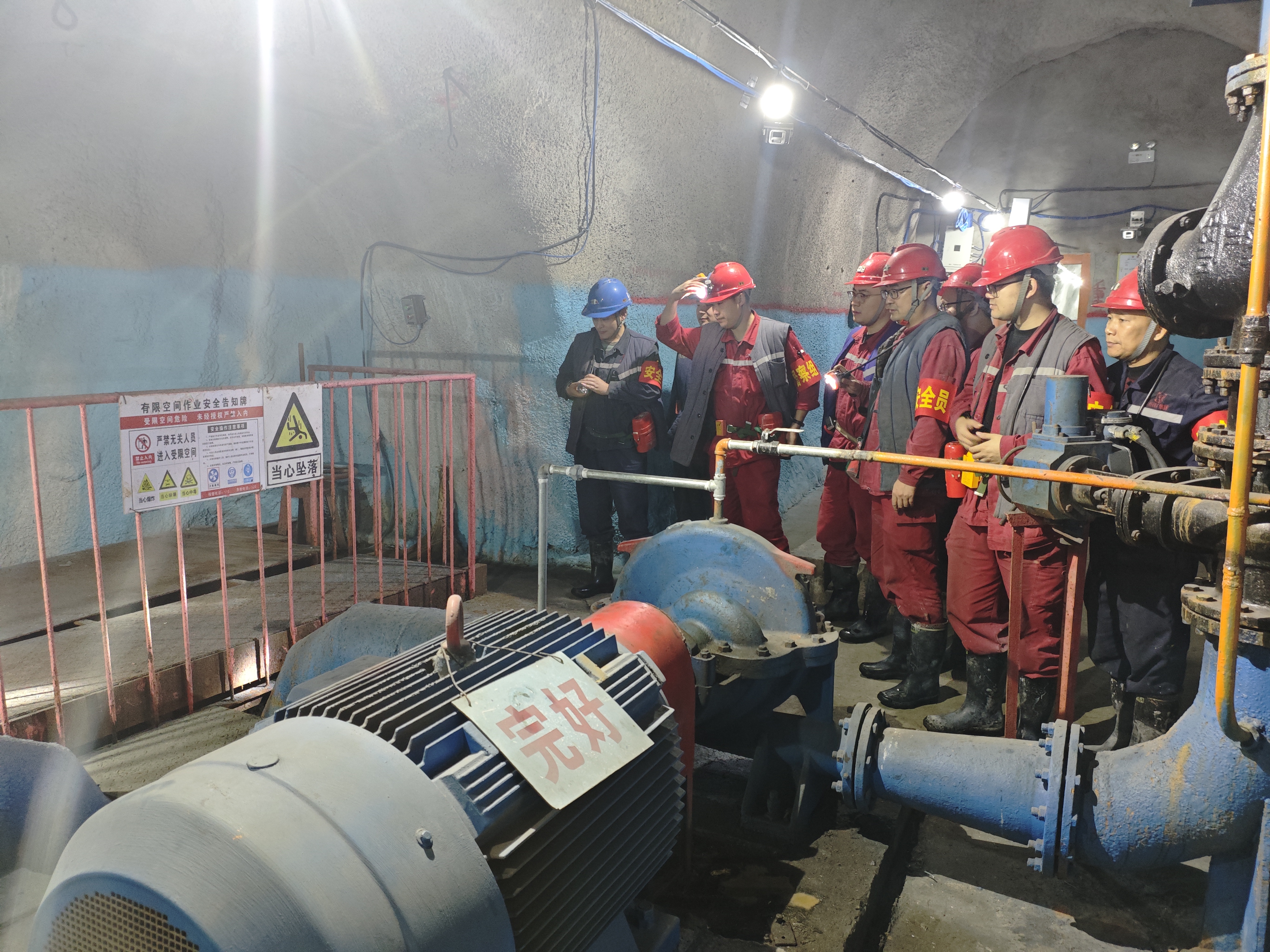 聚力攻坚克难,保障稳定运行。抓实设备检修,依托“设备检修责任区”,系统开展日常性与节点性检修工作。日常检修按“日、周、月”周期推进设备检查、维护与保养;节点检修利用劳动节、国庆节等假期,集中完成副井井仓罐道木、防过卷装置、尾绳、主井计量斗衬板等关键设备的检修与更换,有力保障生产平稳运行;破解生产难题,针对井下局部巷道施工条件复杂等问题,党员技术骨干牵头成立专项攻坚小组,深入现场勘查、采集数据、分析研判,制定针对性施工方案,通过控制爆破量、科学运用凿岩台车与“27钻”等措施,有效增强顶板与围岩稳定性,保障出矿作业安全高效。