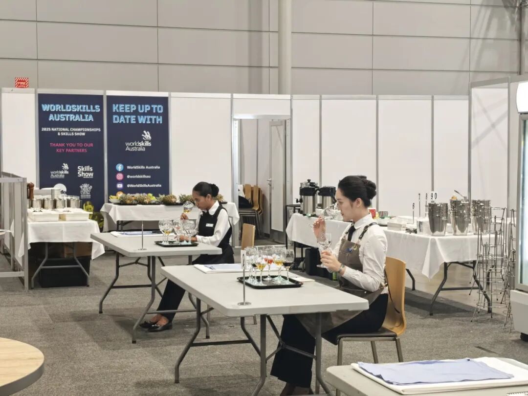 孙逸杨并非世人眼中的“天才”。初中时期“记忆力差”的标签,让她早早深知“勤能补拙”是唯一的捷径。国赛的餐厅服务项目,堪称对“全能型”人才的极致考验。它涵盖零点服务、休闲服务、咖啡下午茶服务、酒吧服务四大模块,不仅要求选手能用流利的英语与客人无缝沟通,还需熟练制作咖啡、调制鸡尾酒、烹饪基础菜肴以及完成专业的侍酒服务。
