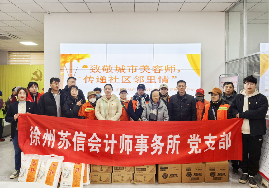 庆北社区社会工作服务站内暖意涌动,一场以“致敬城市美容师,传递社区邻里情”为主题的慰问活动温情上演。社区携手徐州苏信会计师事务所,为辖区环卫工人送上冬日暖心礼包,米、面、保暖贴、洗衣液等实用物品满载心意,精准契合一线工作者的生活所需。