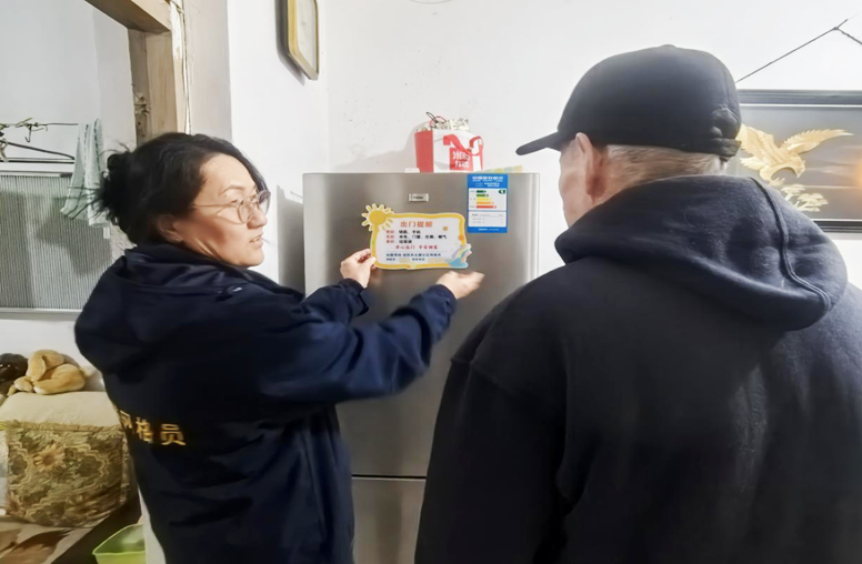 永康社区立足辖区老旧小区集中、老年居民占比高的实际情况,针对部分老年人记忆力减退等问题,精心设计制作了一批“爱心提示贴”。提示贴聚焦“出门两不忘、安全四关闭”等日常出行关键要点,以通俗易懂的文字搭配生动温馨的图标,直观清晰地为老年居民筑牢“记忆防线”与“安全屏障”。社区网格员积极化身“暖心使者”,在日常走访中挨家挨户送上提示贴,与老人们促膝长谈、拉近距离,细致询问生活状况、倾听需求诉求,用一声声耐心叮嘱传递社区温情,勾勒出邻里守望、和谐共融的美好图景。