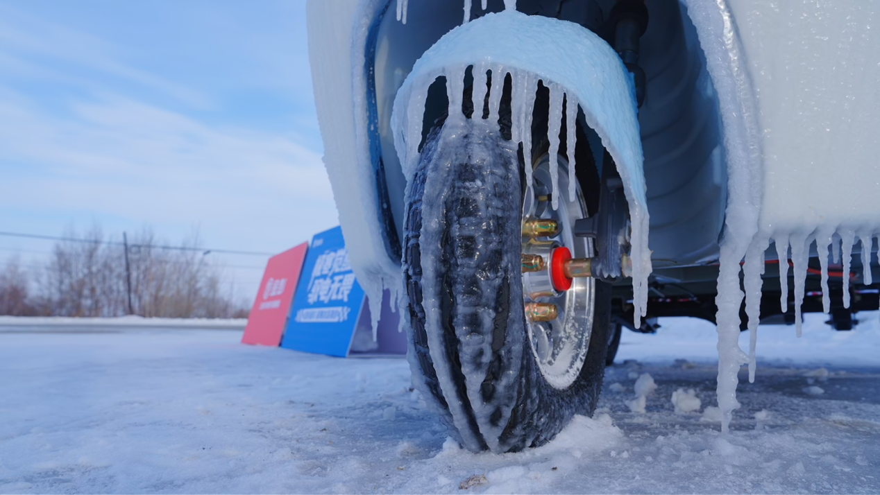 在挑战启动前,金彭“雪宝”经历了一整夜的室外极寒冰冻考验,整车表面由水浇筑形成坚实冰层,宛如披上冰雪铠甲。即便在如此严酷条件下,车辆密封系统依然表现优异,无任何渗水、结霜现象,确保内部关键部件干燥完好。