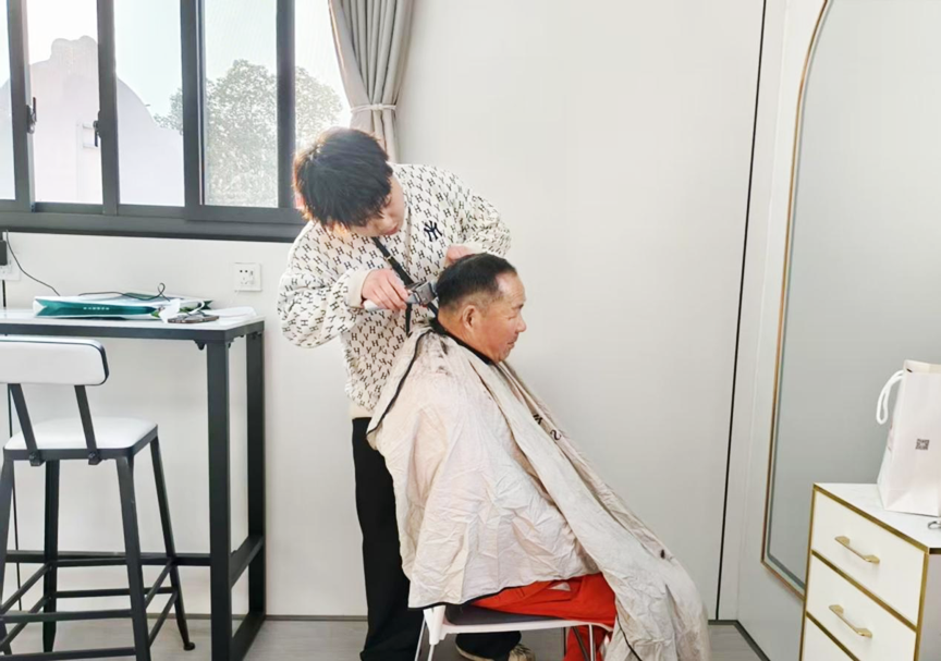 活动现场布置简洁温馨,各服务摊位前早早排起长队,贴心服务赢得群众连连称赞。便民理发站内,志愿者理发师们手起刀落,技艺娴熟。他们一边细致询问发型需求,一边精心修剪发丝,让前来理发的群众容光焕发。“平时天天在外跑,根本抽不出时间打理头发,工会的活动太及时了,剪完清爽又精神,正好能干干净净迎新年!”刚理完发的外卖骑手陈师傅对着镜子整理发型,笑意盈盈地说道。