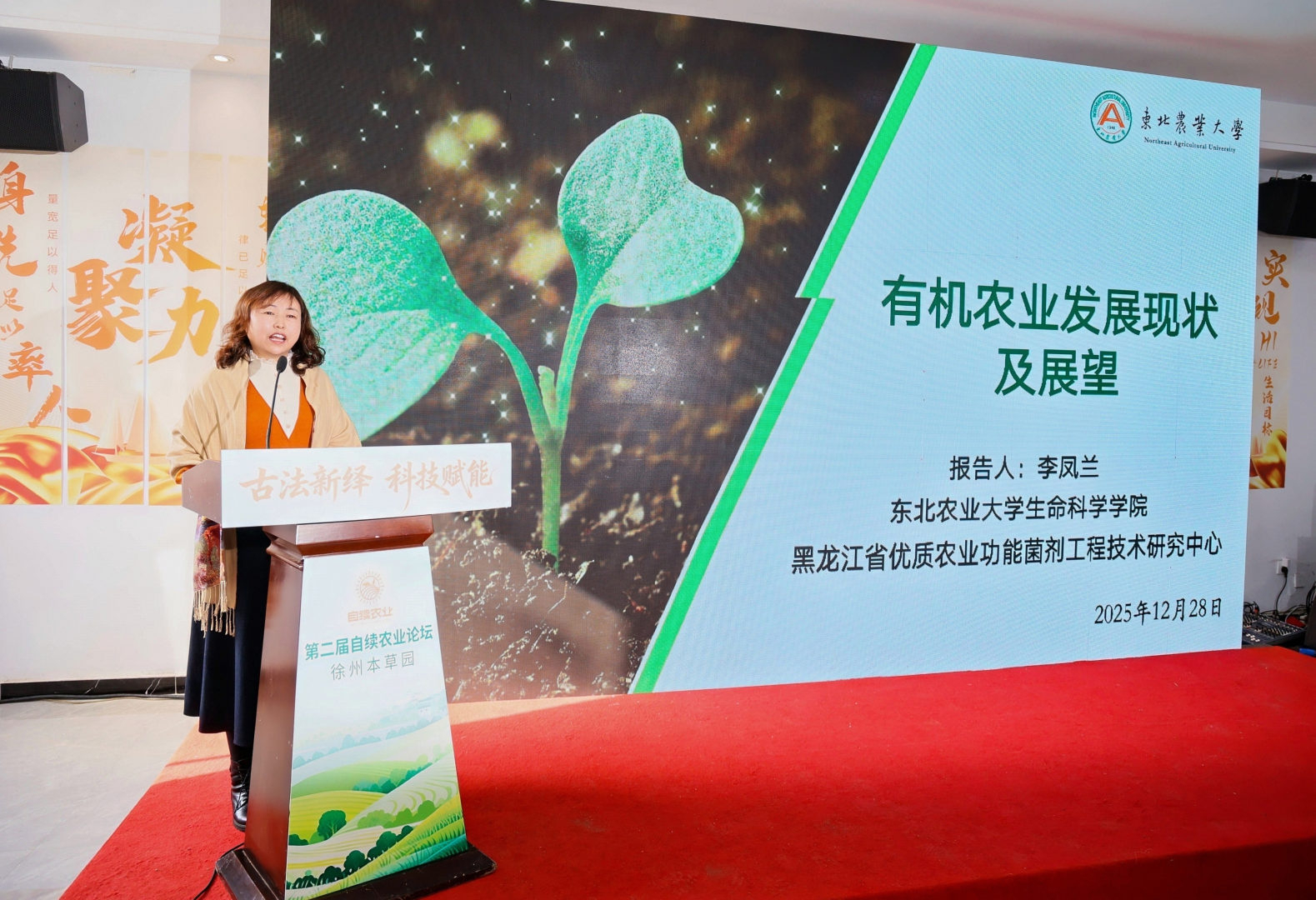 论坛现场,众多农业领域大咖带来了一场场思想盛宴。美国纽约科学院院士、世界有机农业运动联盟(IFOAM)标准委员会委员徐会连博士,作了题为《自然农耕文化与技术》的书面发言。农业农村部食物与营养发展研究所科技处副处长朱大洲从顶层设计层面解读政策风向,指引自续农业深度嵌入国家粮食安全与大食物观战略。黑龙江省农业科学院畜牧研究所副研究员冯艳忠博士分享“种养加”循环模式,生动诠释“变废为宝”的绿色逻辑。东北农业大学生命科学学院教授李凤兰结合实际案例,阐述了我国有机农业发展现状及寒地自续农业水稻生产技术。农业农村部畜牧业绿色低碳科技专家张海峰分享了养生珍品赤松茸的营养、保健、口感三重亮点,及易种稳收的产业优势。孟诜四十二代药食同源传承人孟庆喜从孟诜与《食疗本草》入手,讲述药食同源的千年智慧。智慧农业数字化转型专家崔克俊现场揭秘智慧农耕系统——“照妖镜”系统,更是将活动气氛推向高潮,专家现场演示如何为农产品建立数字化的信任身份证,让与会嘉宾感受到科技为农业带来的变革力量。思想碰撞之间,现代农业的“四梁八柱”愈发清晰。