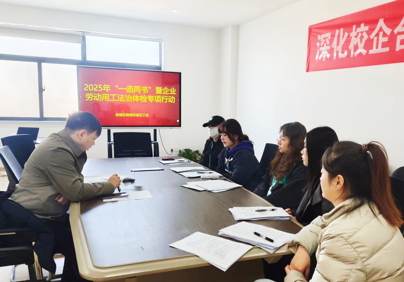 合规用工是企业长远发展的“护身符”。在君盛广场写字楼内,工作人员正将量身定制的《企业合规用工风险防范手册》精准送至企业负责人手中。牌楼街道总工会聚焦辖区中小微企业法治需求,通过一对一、面对面的精准对接模式,深入40余家重点企业开展专项走访。重点围绕劳动合同签订、工资支付、社保缴纳等企业高频关切点,结合鲜活案例拆解法律条文、现场答疑解惑,累计覆盖企业管理者90余人次,进一步帮助企业厘清用工风险边界。