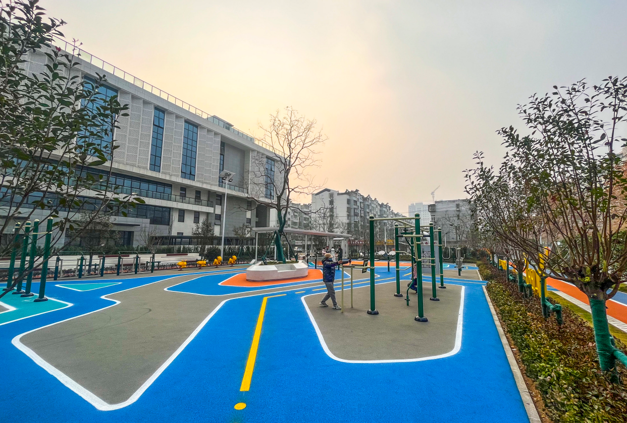 这处位于明珠路与吴庄路交叉口的口袋公园,总面积约3600平方米。步入其中,健身设施一应俱全,一步一景,让人心旷神怡。泉山区城管局工作人员饶壮介绍,公园以“全民健身”为主题,设有活动广场、景观廊架与慢跑道等,选取乌桕、樱花、红枫等乔灌木搭配栽植,形成四季有景、功能复合的公共空间。“前不久开放后,这里就成了周边居民休闲健身的好去处。”