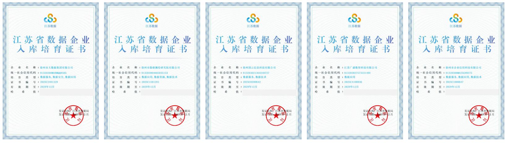 新华报业·中国江苏网讯 近日,2025年度江苏省数据企业入库培育工作结果正式揭晓,徐州市大数据集团协同四家子公司成功通过层层审核,入围数据资源、数据技术、数据服务、数据应用、数据安全五大类别12项省级数据企业培育资质。此次入围的四家子公司分别为徐州市勘察测绘研究院有限公司、徐州国云信息科技有限公司、江苏广盛数智科技有限公司、徐州市企业信用科技有限公司,标志着徐州市大数据集团发展迈入高质量进阶新阶段。