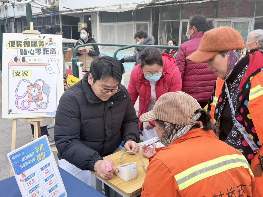 “师傅,帮我把这把菜刀磨磨,过年好切肉!”磨刀点位前,居民排起长龙,砂轮飞转间,刀具重焕寒光;义诊区里,医护人员耐心为老人量血压、测血糖,并给出冬季养生建议;金融专区内,工作人员结合案例讲解反诈技巧,守护居民“钱袋子”。针对行动不便群体,社区还开通“绿色通道”,安排专人上门服务,让便民举措既有“力度”更有“温度”。