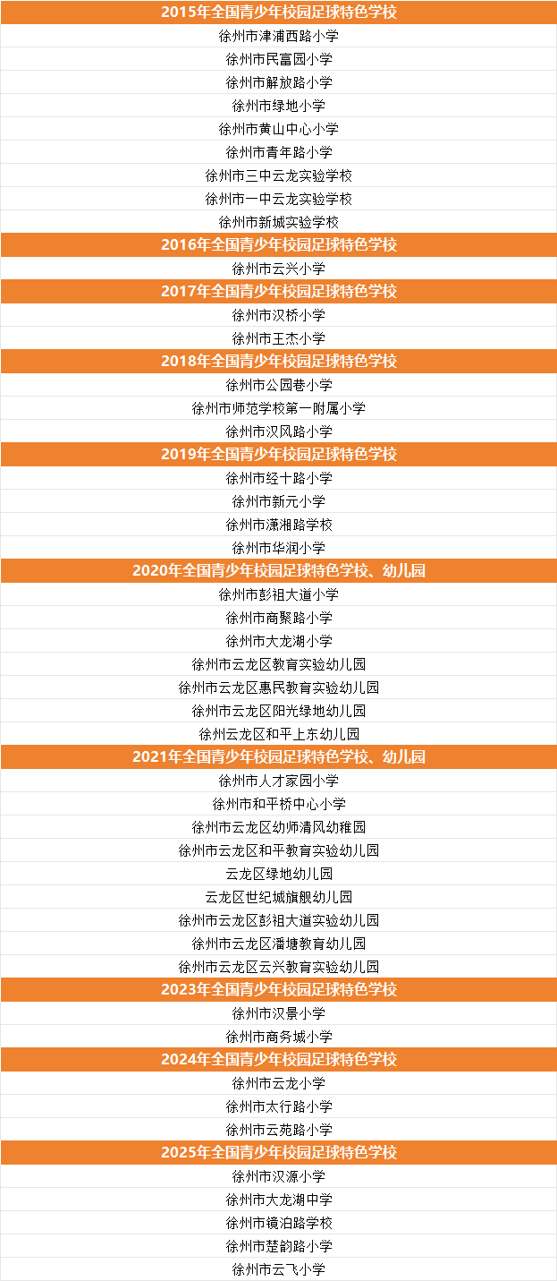 云龙区校园足球工作起步早、基础实。2015年,该区便被江苏省教育厅认定为首批青少年校园足球试点县(市、区),首批8所学校率先获评全国青少年校园足球特色学校;2018年,又成功获评徐州市首个全国青少年校园足球试点县(市、区)。十余年间,云龙区持续推进校园足球普及,按批次推动学校创建特色品牌,从2015年的津浦西路小学、解放路小学等,到2025年新增的汉源小学、大龙湖中学等,逐步实现中小学全覆盖,目前全区另有11所幼儿园获评全国足球特色园,形成“幼小衔接、全域联动”的发展格局。