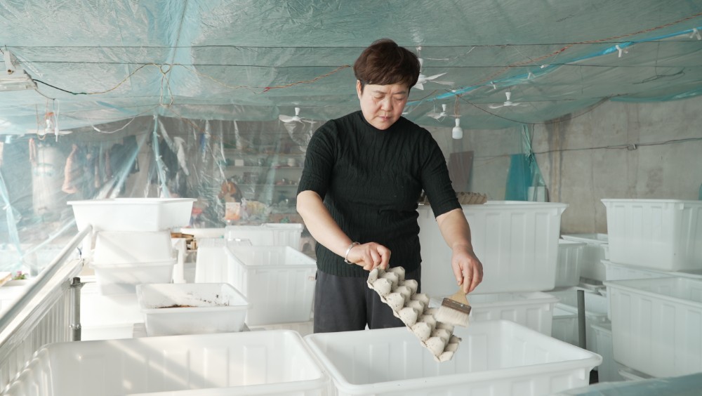 创业之路从非一帆风顺。蟋蟀喜高温,冬季养殖需增温保暖,谢广荣起初将锅炉置于一楼楼梯间,不料发生倒烟问题。由于她日常需兼顾家庭,未能及时发现异常,导致蟋蟀大范围死亡,遭遇了创业初期的挫折。“心疼但不服输,失败了就重新再来!”谢广荣迅速吸取教训,将锅炉移至室外,通过暖气片规范增温,同时潜心钻研养殖技术,逐步摸准了蟋蟀的生长习性。
