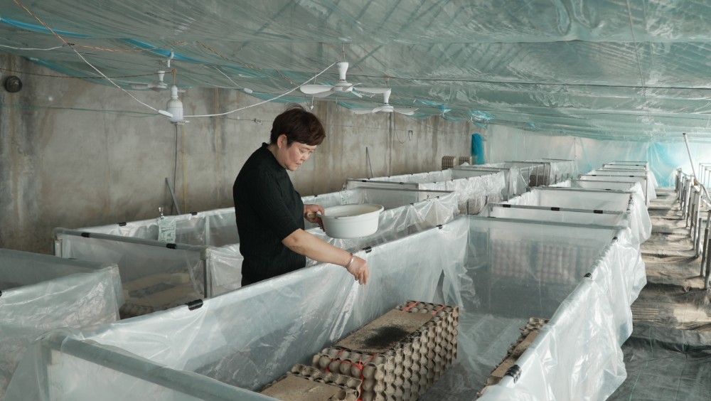 随着养殖经验积累,蟋蟀繁殖进入“裂变式增长”,简陋民房已无法满足规模扩张需求。2025年5月,谢广荣与老伴儿一同赴临沂、郯城、新沂等地考察,最终选定成本最低的“钢管+塑料薄膜”大棚养殖模式。当年6月,她承包大棚搭建起标准化养殖池,还成功改良饲料配方,将每斤饲料成本从3元降至2元以下。“一天只需撒一两遍食,一个人就能轻松打理,忙的时候家人搭把手就行,完全不耽误照顾家庭。”谢广荣说,便捷的养殖模式让她实现了“顾家、赚钱两不耽误”。