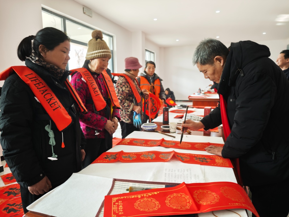 “麻烦给我写一副‘平安行万里,顺意渡千川’!”“我想要个带‘福’字的平安符,给家人报个平安!”在现场书写区,江苏交通文联书画分会、徐州书法家协会代表与船员书法爱好者围桌挥毫,红纸翻飞间,一幅幅饱含祝福的个性化春联、福字、平安符新鲜“出炉”。船员们手持笔墨佳作,或在书写现场合影,或登上船头定格笑脸,镜头下的每一张脸庞都洋溢着对新春的期盼。