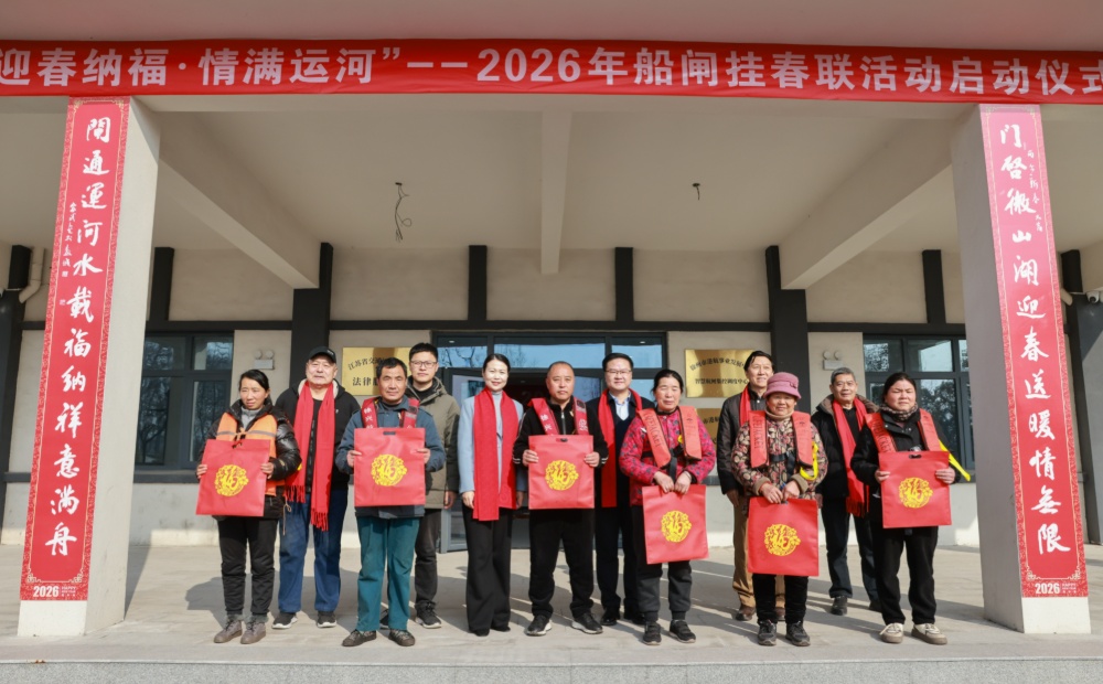 新华报业・中国江苏网讯(记者 张扬 通讯员 彭波)运河潮起迎新春,福润船闸暖航程。2月4日,由江苏交通文联牵头组织的“迎春纳福・情满运河”2026年春节船闸挂春联集中启动仪式在徐州蔺家坝船闸分会场举行。作为全省联动的文化惠民活动之一,徐州港航以春联为媒、以服务为桥,将中华优秀传统文化与水运民生保障深度融合,为南来北往的船员送上新春祝福,也为“水运江苏・美丽港航”建设注入浓浓的年味儿与温情。