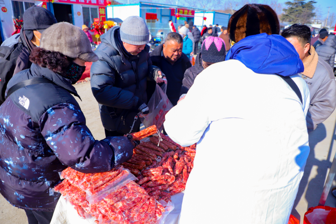 舌尖寻年味,烟火暖人心。走进琵琶山大集食品区,浓郁的年味香气扑面而来。肉食摊位上,一串串油润鲜亮的腊肠悬挂整齐,在冬日暖阳下泛着琥珀光泽,肥瘦相间的肉质紧实饱满,摊主熟练地为市民称重推介,地道的腊味承载着徐州人过年的经典记忆;烙馍摊位前,摊主娴熟地在鏊子上翻转面团,一张张冒着热气、柔韧筋道的手工烙馍新鲜出炉,卷上馓子、辣菜,便是刻在徐州人基因里的家乡老味,不少市民专程前来排队,只为品尝这一口熟悉的年味。