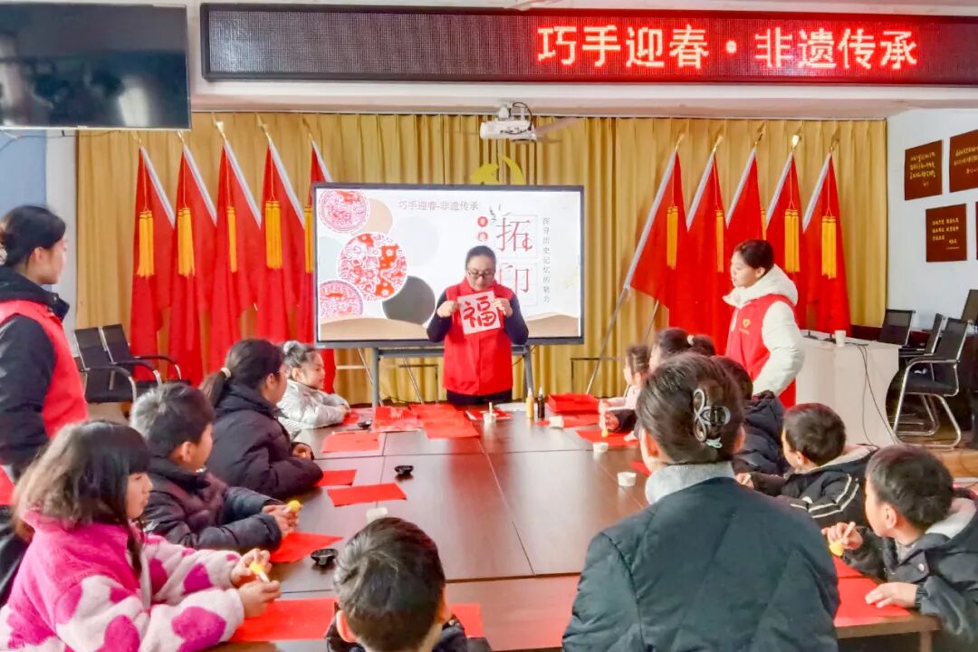 拾屯街道杨西村新时代文明实践站开展“巧手迎春 非遗传承”未成年人拓印主题活动。志愿者现场讲解拓印非遗知识,示范上墨、拍打、揭纸等关键步骤,孩子们认真学习、动手实践,成功完成福字、吉祥纹样等拓印作品。活动既有效缓解了假期家庭看护压力,又将非遗技艺与新春民俗相结合,让中华优秀传统文化在青少年心中生根发芽。