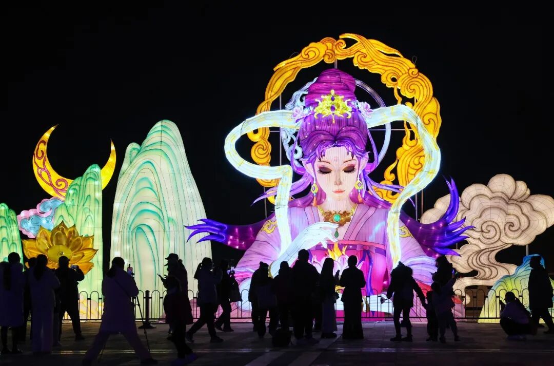 夜幕降临,蟠桃山景区内8万平方米灯海璀璨夺目,首届“古韵新潮・蟠桃灯宴”成为徐州经开区新春文旅的亮眼名片。50余组非遗彩灯结合现代灯光技术,在千年山麓铺就出一条璀璨的灯光历史长廊,30场沉浸式演艺轮番上演,汉服姑娘与机甲悟空NPC趣味互动,让游客从“看客”变身“参与者”,沉浸式感受传统与新潮碰撞的独特年味。“没想到家乡的灯会这么惊艳,既有儿时的传统年味,又有新潮的互动体验,特别适合全家游玩。”返乡过年的李女士用镜头定格下这一美好瞬间。