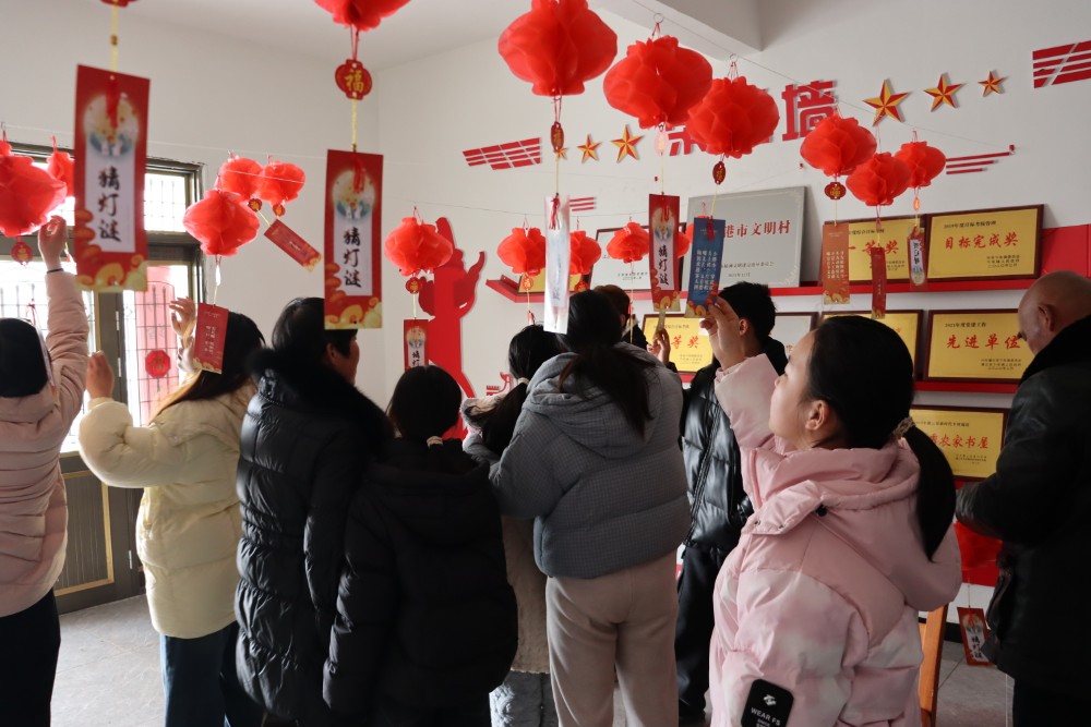 宣讲结束后,“趣猜灯谜寻雅味 笑语欢腾迎元宵”猜灯谜活动拉开帷幕。活动现场挂满了红彤彤的灯笼和五彩斑斓的灯谜条,谜面涵盖传统文化、科普知识、文明新风等多个领域,兼具趣味性与知识性。村民们扶老携幼,驻足在灯谜前认真思索、互相探讨,有的凝神沉思,有的豁然开朗,有的欢呼雀跃地兑换奖品。小朋友们牵着长辈的手,争相认读谜面,现场欢声笑语不断,红彤彤的灯笼与大家的笑脸相映成趣,勾勒出一幅和谐温馨的乡村元宵画卷。