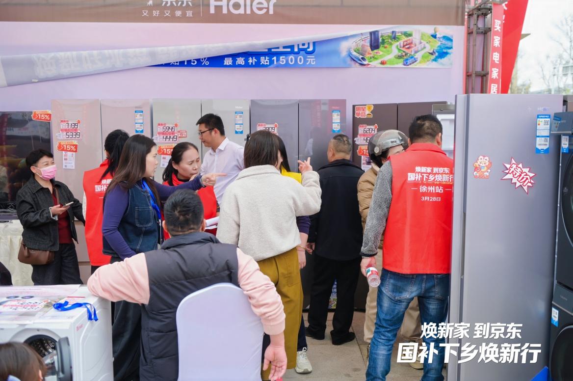 3月28日,京东“国补下乡焕新行”活动正式落地江苏徐州。在荣盛未来广场,京东联动当地京东家电专卖店及3C数码门店,带来了上千款最新潮的家电家居、3C数码产品,将实实在在的优惠与沉浸式体验带到消费者家门口。消费者不仅可享国家补贴,更有国补下乡专享5折福利好物。随着活动的开启,来自徐州市区及周边乡村的居民来到现场,各展区前人头攒动,热闹非凡。