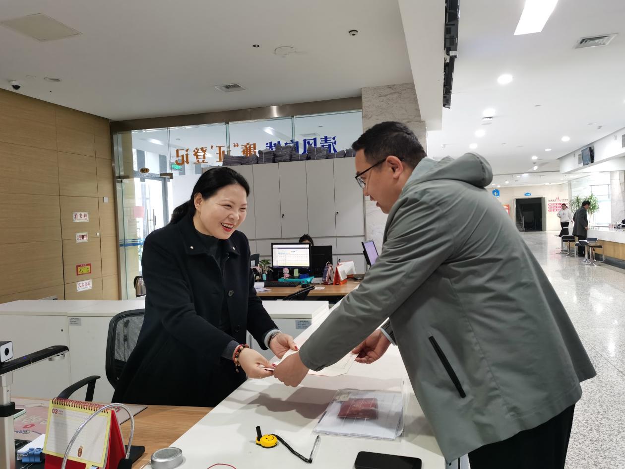 当天上午八点半,睢宁县政务服务中心刚一开班,汤超便赶来办理业务。在徐州市住房公积金管理中心睢宁管理部提贷业务负责人杨柳的全程陪同下,他先在睢宁县不动产登记交易服务中心办理了契税缴交,领取了不动产权证书,随后到公积金窗口办理提取业务。从进门到资金到账,整个过程高效顺畅。