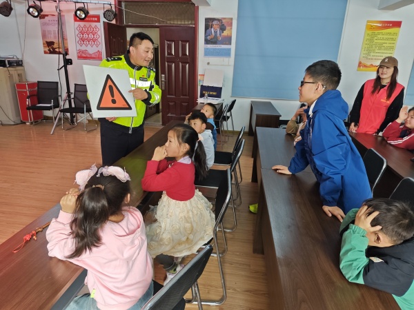 志愿者还组织开展交通标识配对小游戏,让孩子们分组协作,将标识图案与对应含义精准匹配,在互动玩乐中巩固所学知识,让抽象的交通标识变得直观易懂。活动尾声,交警为表现优异的孩子颁发交通安全主题书签、卡通贴纸等小礼品,鼓励大家争当“家庭交通安全宣传员”,把学到的知识传递给家人,带动全家共守交通规则。