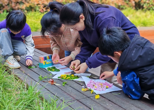 大家化身“小小春天收藏家”,精心捡拾落叶、花瓣、枝条等自然素材,动手制作植物标本、创意贴画、春日花环,用巧手将春日美景定格成独特作品,在动手实践中感受自然之美、体验创造之乐。