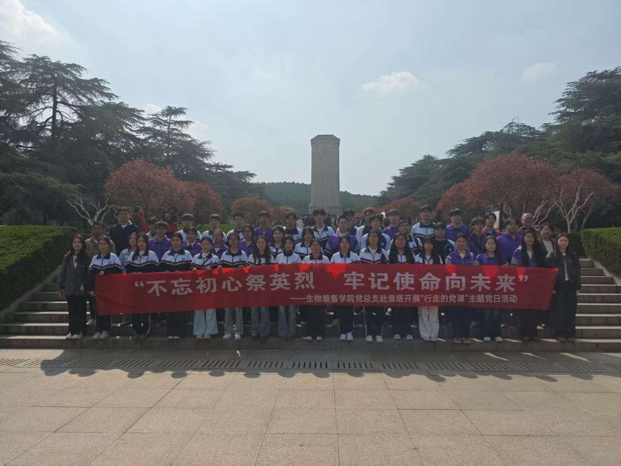 新华报业·中国江苏网讯 清明时节,翠柏凝春,万物萌发。4月1日,徐州生物工程职业技术学院生物装备学院组织师生前往淮海战役烈士纪念塔,开展“不忘初心祭英烈,牢记使命向未来”清明祭扫主题党日活动,将爱国主义教育融入沉浸式思政课堂,引导青年学子从英烈精神中汲取奋进力量。学院党总支书记史少伟、副书记杨海亮,党员代表、学生入党积极分子、各班团支书及学生干部代表共同参加。