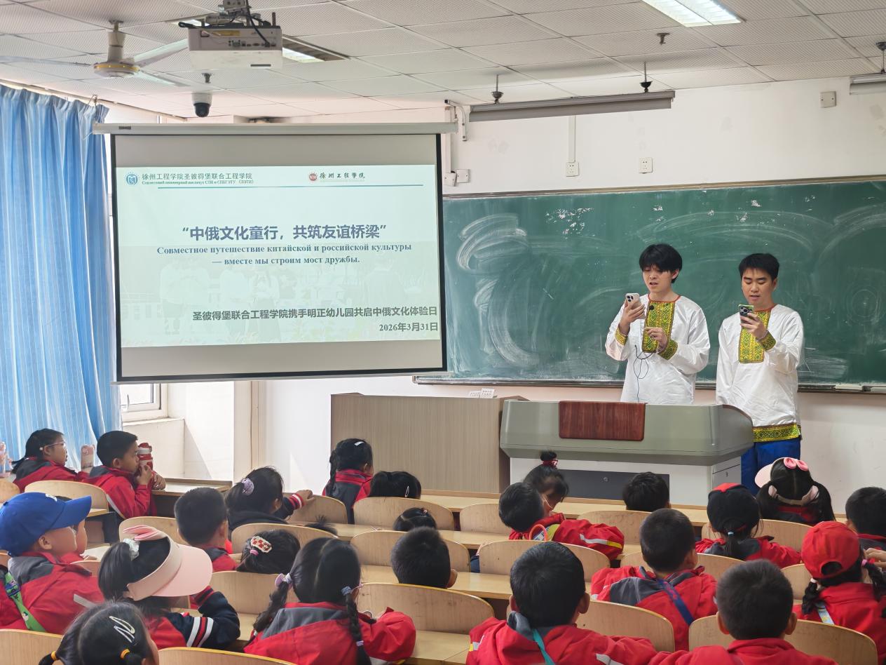新华报业·中国江苏网讯 为深化中俄人文交流,充分发挥高校在语言文化传播中的辐射作用,近日,徐州工程学院圣彼得堡联合工程学院携手云龙区明正幼儿园,共同开展了“大手牵小手,欢乐学俄语”主题活动。来自幼儿园的萌娃们走进大学校园,在非遗的熏陶与俄语启蒙的趣味中,开启了一场别开生面的跨文化探索之旅。