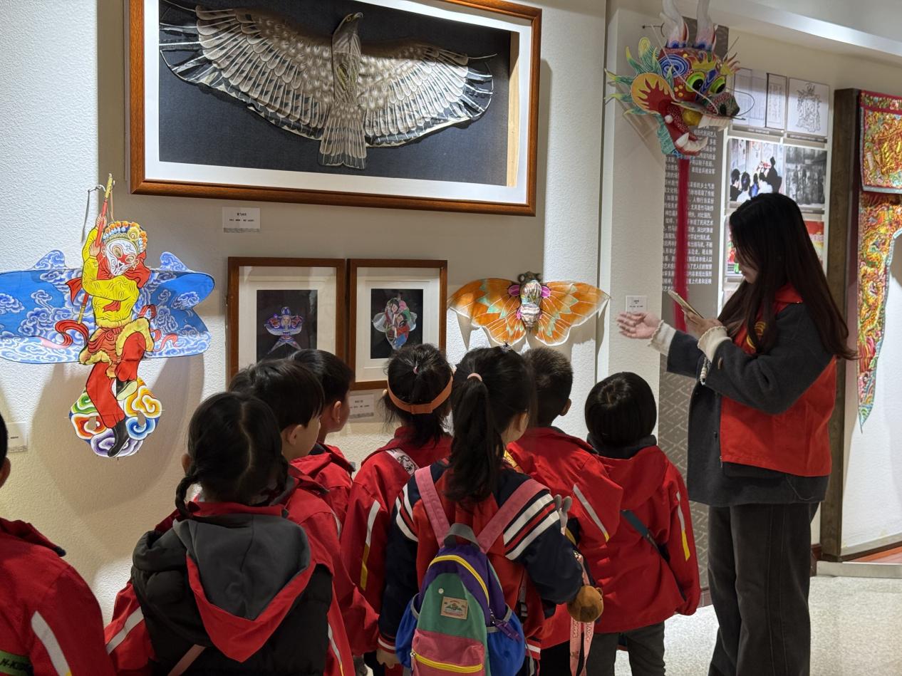 活动伊始,大学生志愿者带领孩子们走进非物质文化遗产研究中心。馆内整齐陈列着徐州剪纸、香包制作等精美的非遗展品。志愿者们化身专业讲解员,用通俗易懂的语言为孩子们娓娓道来展品背后的历史渊源与文化内涵。在近距离观察环节,志愿者向孩子们展示了剪纸中蕴含吉祥寓意的纹样,并手把手教孩子们识别香包上细腻的刺绣纹理。随后的体验环节将气氛推向高潮,孩子们有的拿起剪刀和红纸,小心翼翼地折叠、裁剪;有的拿起针线,认真模仿简单的刺绣针法。通过动手实践,孩子们在幼小的心灵中种下了热爱中华优秀传统文化的种子,沉浸式感受了非遗技艺的独特魅力。