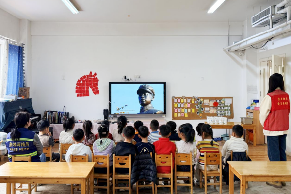 红色教育润童心,英雄精神伴成长。宜居社区走进辖区幼儿园,开展“听英雄故事,做红色传人”主题活动,让王杰精神浸润儿童心灵。活动现场,志愿者带领孩子们观看纪念影片,用通俗易懂的语言讲述王杰烈士勇救他人、无私奉献的英雄事迹,细致解读“一不怕苦、二不怕死”的精神内涵。