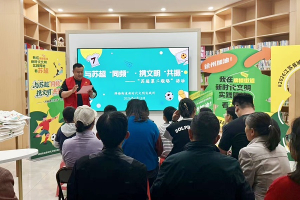 新华报业·中国江苏网讯 4月18日晚,2026赛季江苏省足球超级联赛徐州队主场迎战泰州队火热开赛。徐州市鼓楼区牌楼街道精心打造鼓楼花园社区综合文化服务中心、绿健社区新时代文明实践站两处“苏超第二现场”,以“文明共振”“绿茵童享”特色模式,让辖区居民在家门口共赴足球盛宴,共享体育激情。活动通过社区微信群、网格员联络群提前宣传预热,吸引了近百名居民踊跃参与。