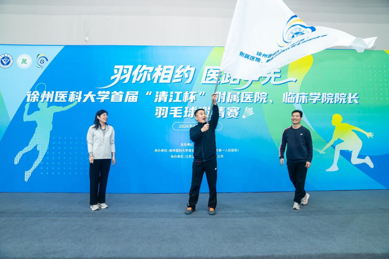 在会旗交接仪式中,刘慎军宣布下一届附属医院、临床学院院长羽毛球邀请赛由徐州医科大学附属医院承办。