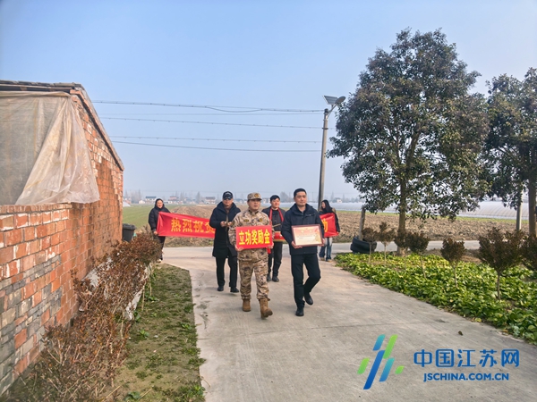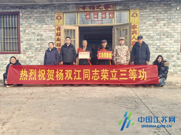中国江苏网2月3日盐城讯 2月2日,东台市退役军人事务局优抚科、许河镇人民武装部、镇退役军人服务站、板鱼村相关负责人共同为荣立三等功的现役军人杨双江家庭开展送喜报慰问活动,让军人的荣耀与家乡的温情双向奔赴。