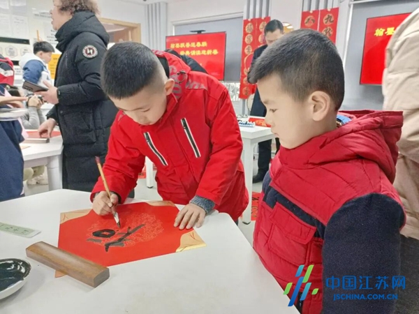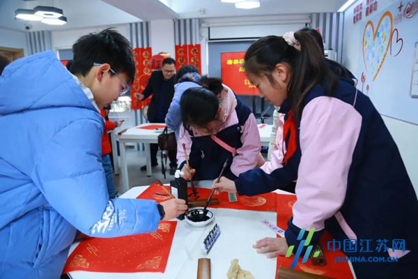 中国江苏网2月6日盐城讯 岁末添喜,年味渐浓。为弘扬中华优秀传统文化,营造欢乐祥和的节日氛围,深化校社共建融合,切实将温暖与祝福送到群众身边,2月4日上午,盐南高新区黄海街道南苑社区携手盐城市第一小学,在社区新时代文明实践站共同开展“翰墨飘香送春联 经典诵读迎新春”主题活动。盐城市第一小学党委书记秦岭、校长祁生洋、副校长蔡绪稳,以及黄海街道、南苑社区相关负责人出席活动,该校成达社团师生代表、社区党员志愿者及辖区居民齐聚一堂,以笔墨传情、以诵读寄意,共迎马年新春。