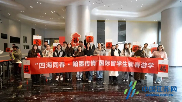 中国江苏网2月6日盐城讯 春节将至,年味渐浓。为了让外国留学生感受中华优秀传统文化魅力与盐城经济社会发展活力,2月4日,由盐南高新区与盐城工业职业技术学院共同举办的“四海同春,翰墨传情”国际留学生新春游学活动圆满落幕。这场融合科技与传统、连接世界与盐城的文化之旅,正通过更广阔的舞台,传递出开放盐南独特魅力。