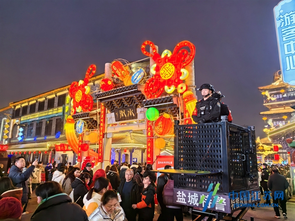 晚上8点,人流、车流达到峰值,执勤民辅警快速响应、高效疏导,全力保障道路畅通。“今年峰值人流量约2万人,我们重点针对景区出入口、周边路口等关键节点增派警力,实时监测车流人流变化,优化路口信号实施配时,及时疏导拥堵路段,全力保障群众出行安全顺畅。”盐城市公安局交管支队相关负责人介绍。