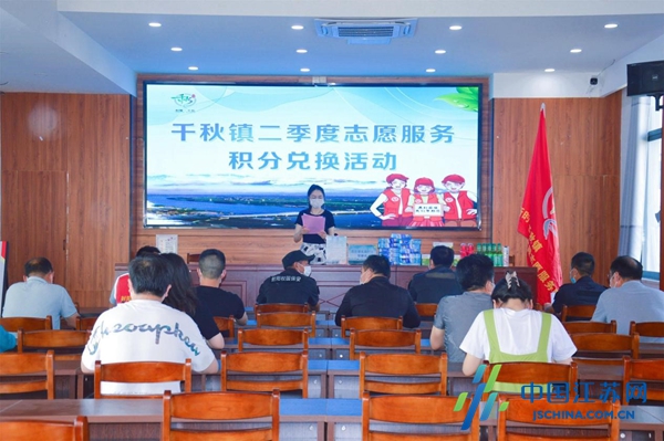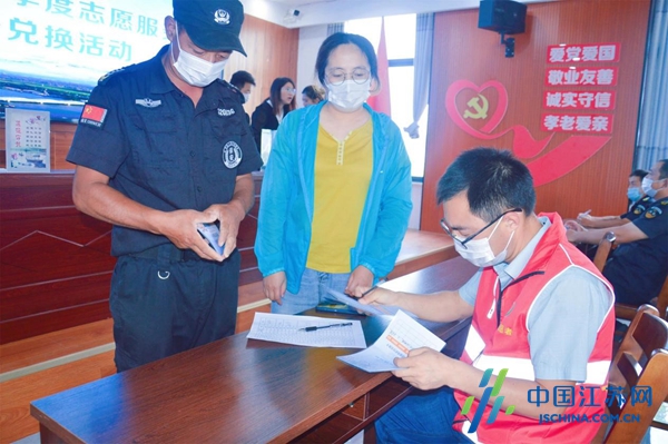 中国江苏网6月24日盐城讯 “我觉得我做了一件很平常的事情,倡导移风易俗、助力文明城市创建、营造文明乡风,是我们每一个人的责任。”近日,盐城市射阳县千秋镇组织开展二季度志愿服务积分兑换活动,活动现场,工作人员根据二季度以来志愿者参与宣传村规民约、美化环境、倡导移风易俗等活动的时间换算成积分并计入积分存折,为志愿者们兑换相应礼品。