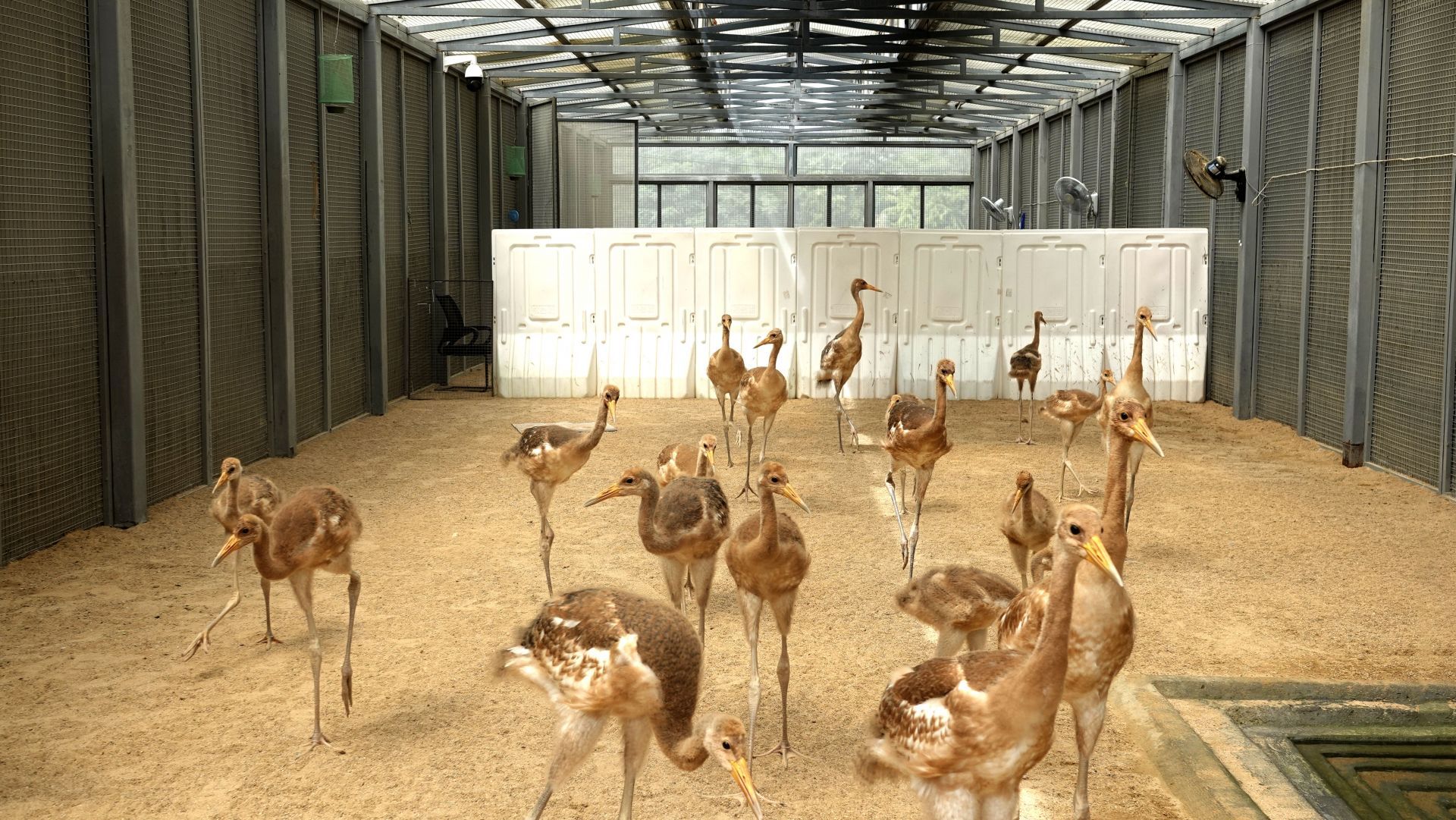 据了解,自1986年,徐秀娟带着鹤卵自黑龙江南下盐城,成为盐城珍禽保护区第一任鹤场场长,正式开启了盐城人工孵育丹顶鹤的历程。36年来,一代代驯鹤人接过使命,在湿地滩涂与鹤相伴,续写爱与守护的故事。从机器到亲鸟孵化,保护区摸索建立起一套成熟的丹顶鹤人工饲养繁殖技术,鹤种群数也达到近200只。