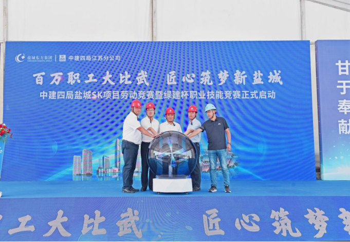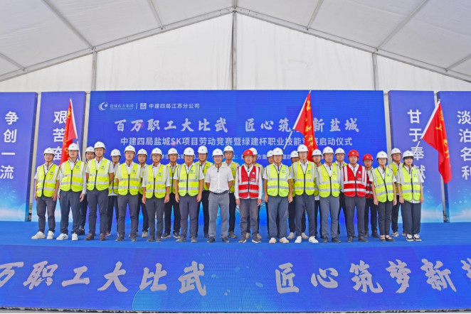 中国江苏网讯 百万职工大比武,匠心筑梦新盐城。7月19日,由盐城市总工会主办,盐城东方集团、中建四局江苏分公司承办的盐城SK 项目劳动竞赛暨“绿建杯”职业技能竞赛启动仪式在中建四局盐城SK 30GWh动力电池项目举行。