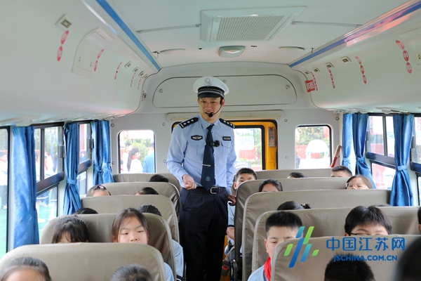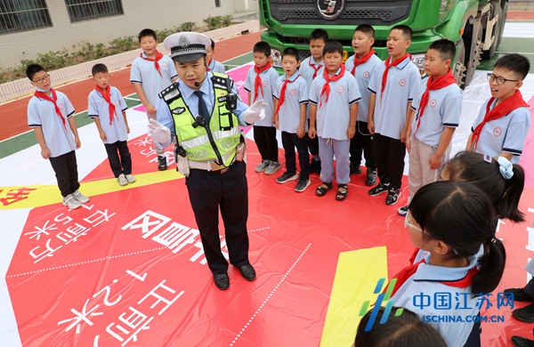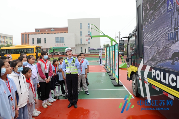 中国江苏网9月1日盐城讯 “车辆前后左右都有盲区,不要在停靠车辆的周边玩耍,遇到大货车要远离。”“乘坐校车要系好安全带,不能将头和手等身体部位伸出窗外,下车时不要从车前横穿马路。”8月31日上午10时,盐城市冈中小学的300余名学生齐聚学校操场,盐城交警将真实交通出行场景“搬”进学校,为学生们开展“沉浸式”交通安全体验教育。