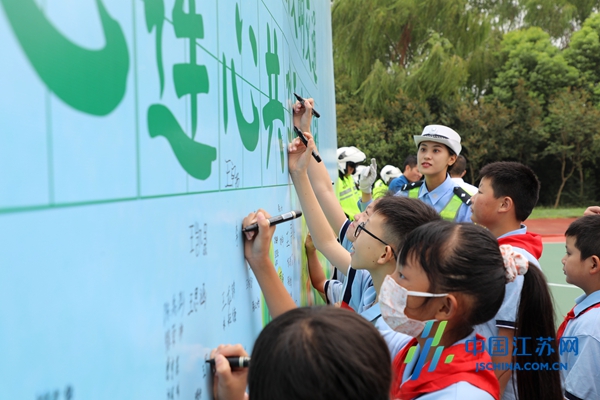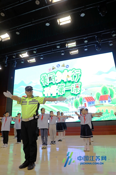 交警手势操表演,同学们踊跃登台、共同参与,动作有模有样、整齐划一;《礼赞斑马线》节目表演,大家主动起立、跟着节奏、挥动手臂、大声齐唱。礼堂内掌声、歌声、欢笑雀跃声此起彼伏,“开学第一课”被一次次推向高潮。活动最后,500名师生与家长一一在文明出行承诺墙上签下了自己的名字,交通安全记在心,文明交通践于行。