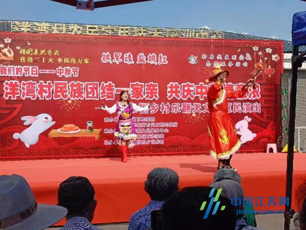 中国江苏网9月13日盐城讯 为铸牢中华民族共同体意识,高举中华民族大团结旗帜,9月11日下午,盐城市亭湖区民族宗教事务局和南洋镇新时代文明实践所在南洋镇洋湾村红石榴家园联合举办“我们的节日·中秋节|民族团结一家亲 共庆中秋情意浓”文化惠民演出活动。