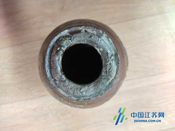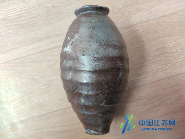 中国江苏网9月19日盐城讯 近日,在盐南高新区伍佑珠溪古镇施工中又发现一件似瓷非瓷、似陶非陶的瓶子。仔细观察可发现,瓶身覆盖着一圈圈螺纹,整体造型大气古朴,外形瘦长,具有十分厚重的历史感。经测量,此瓶高约20厘米,瓶身最凸处直径约10厘米,瓶口外径约6厘米、内径约3厘米,瓶底约4厘米。