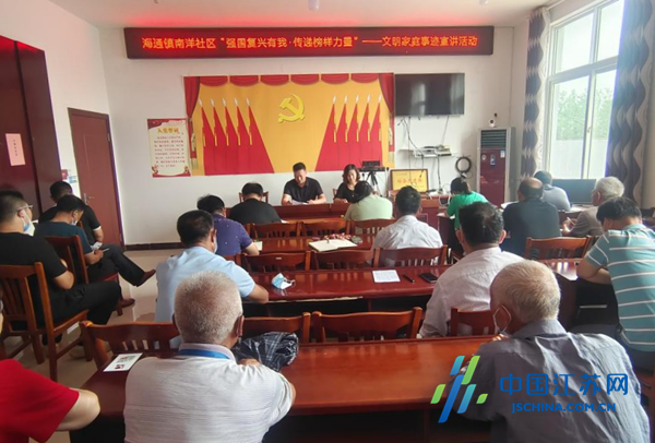 在该镇南洋社区,射阳县第五届“文明家庭”——顾爱鑫家庭先进事迹宣讲温情上演。顾爱鑫以真实朴素的话语分享有趣感人的家庭小故事,充分展示了文明家庭相亲相爱、向上向善的精神风采,生动的宣讲让现场观众深受启发,赢得阵阵掌声。