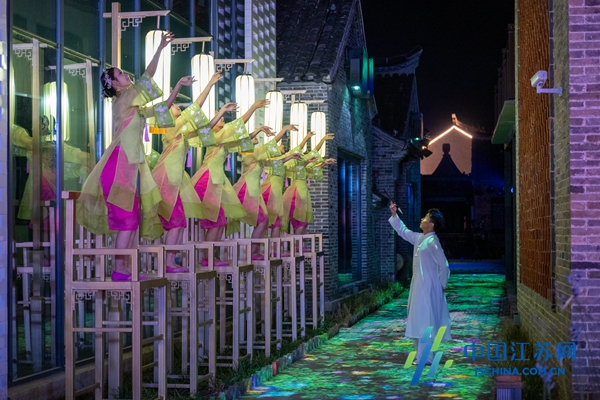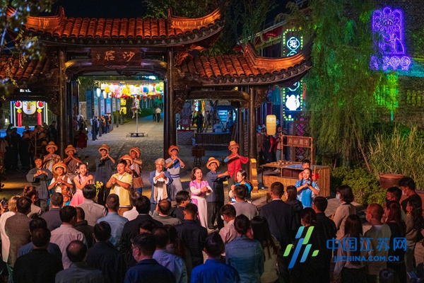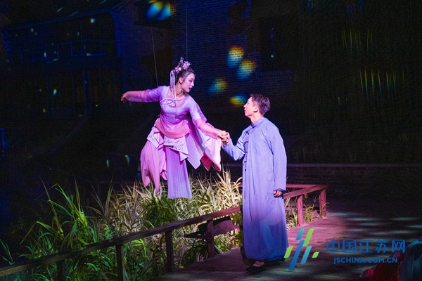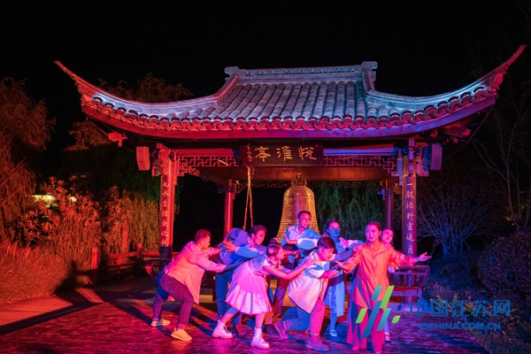 中国江苏网9月30日盐城讯 9月29日晚,以“国家级非遗”淮剧创意为主题的大型多维实景沉浸式秀演《小镇有喜》在盐城市建湖县九龙口旅游度假区预演,炫酷的声光电、精致的服化道以及演员精湛的表演,让众多游客享受了一场极具冲击力的视听感官盛宴。
